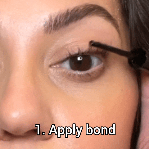 1. Begin by applying Bond (black) to both your natural lashes and the cluster lash band. Allow it to sit for 20 seconds.